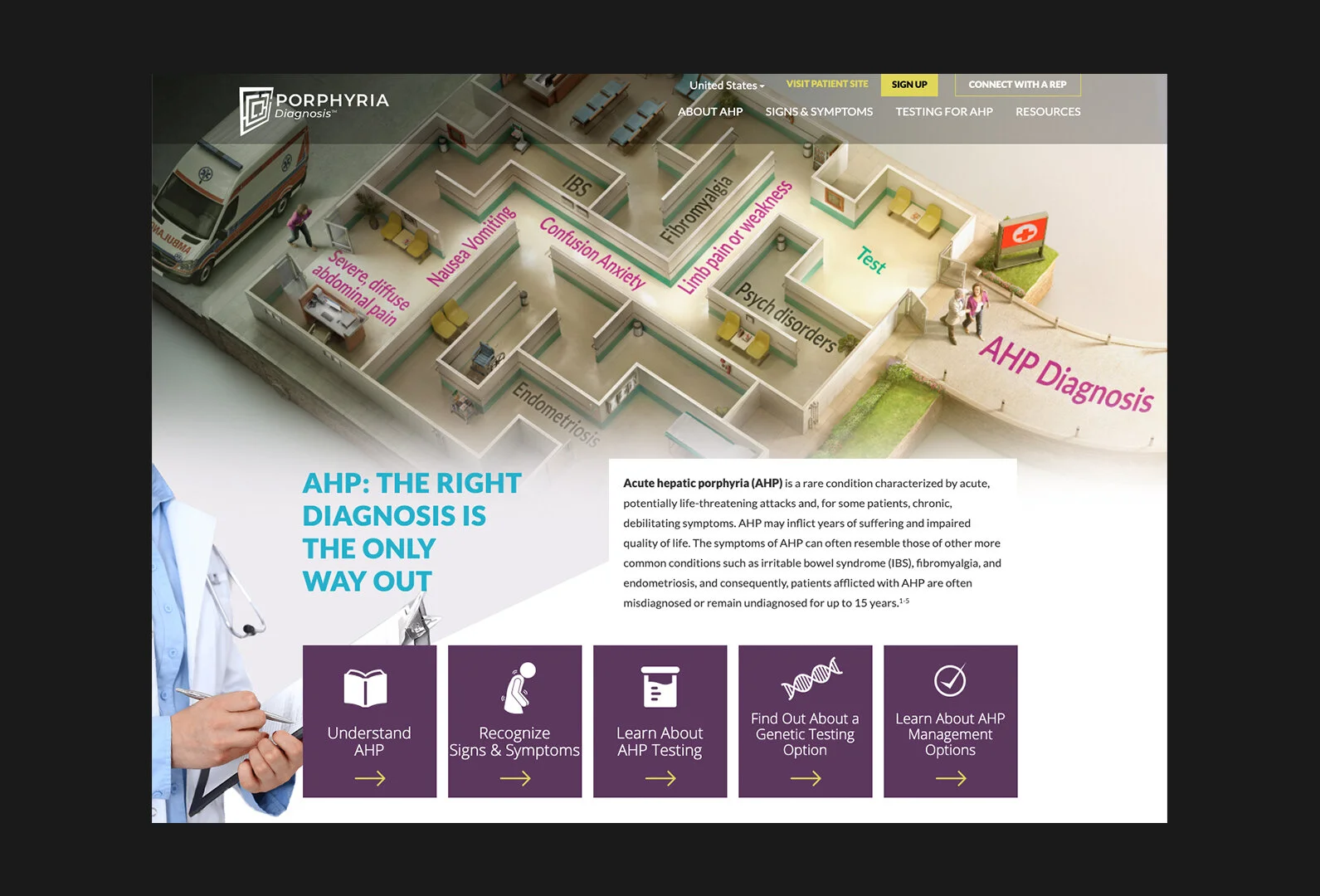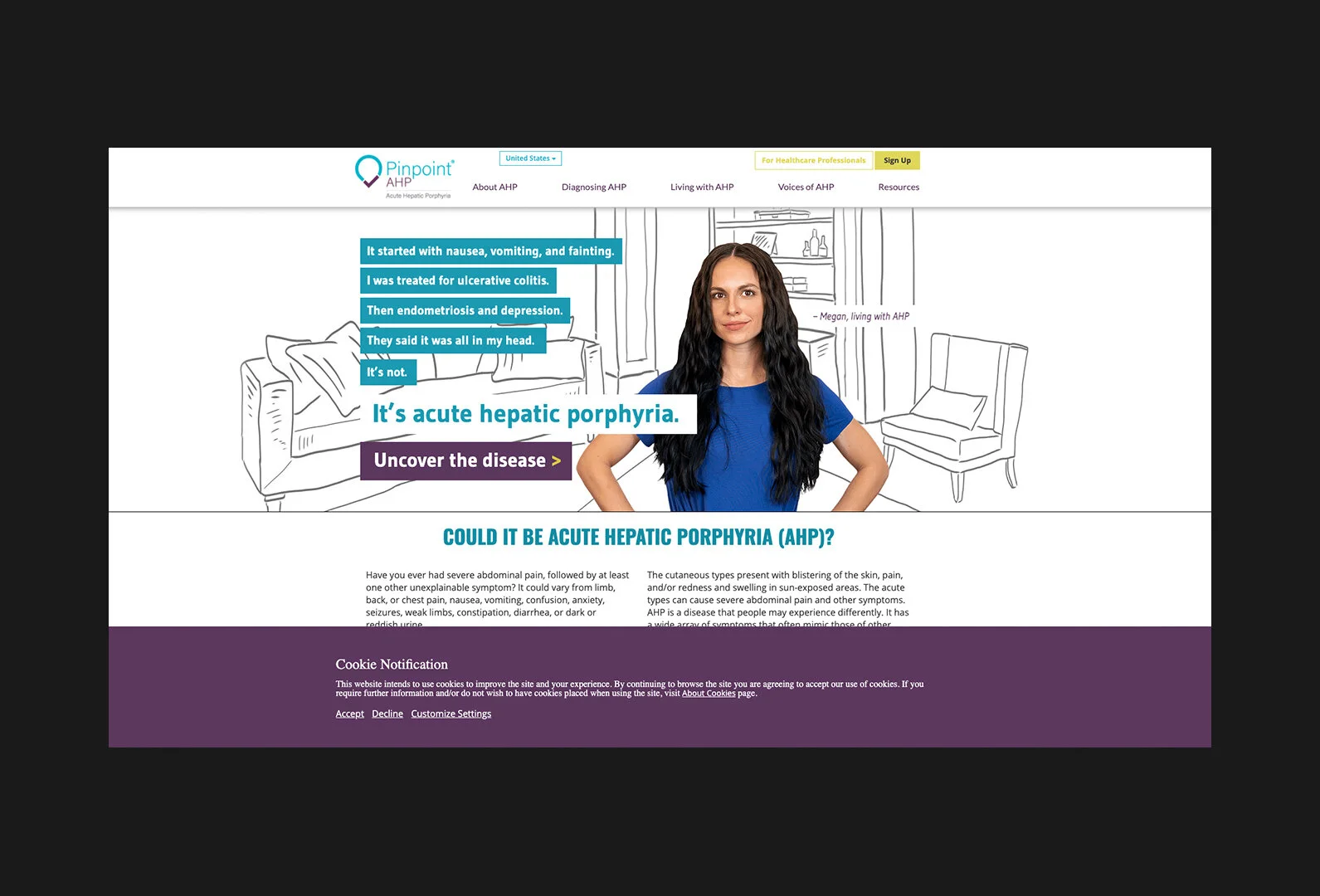 We created unbranded sites/ materials to educate both current and potential patients, as well as healthcare providers, about the rare disease porphyria. These sites led visitors to either the patient or health care professional branded webpages created for Alnylam’s Porphyria treatment Givlaari.