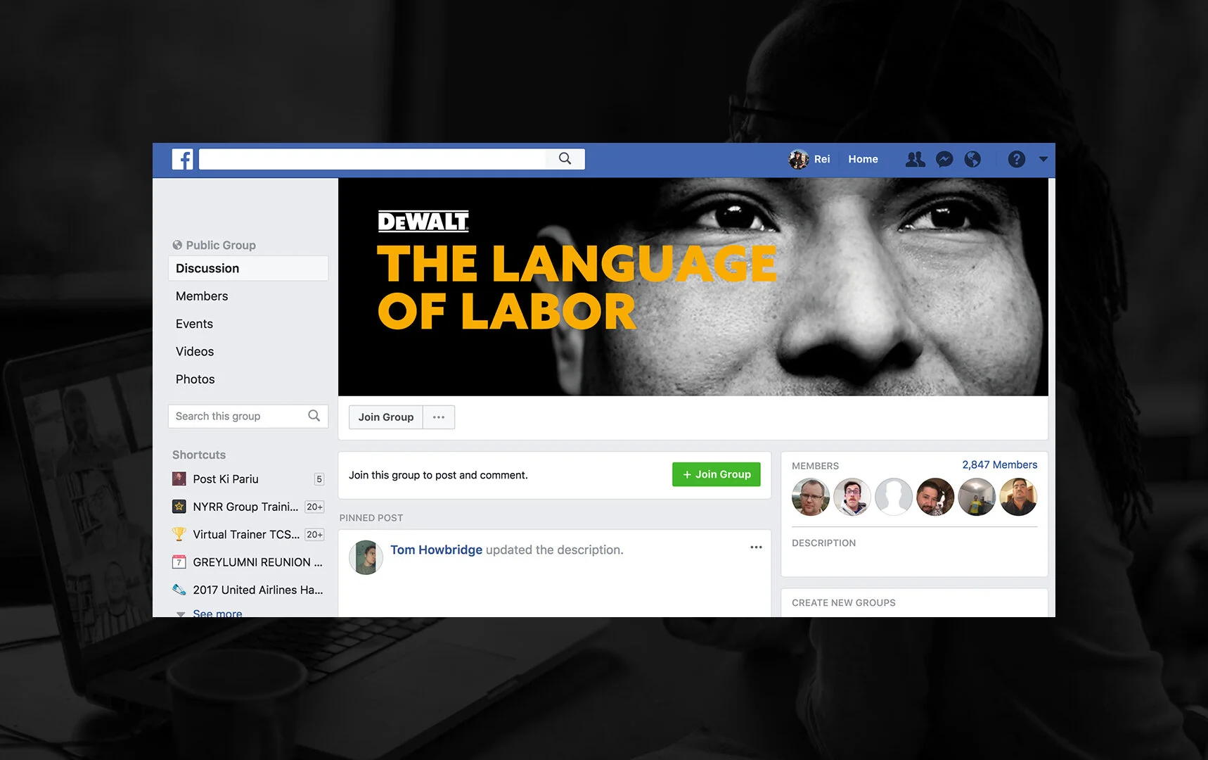 DeWalt will create a sponsored social community page for workers to exchange opportunity, experiences and insights on Facebook.